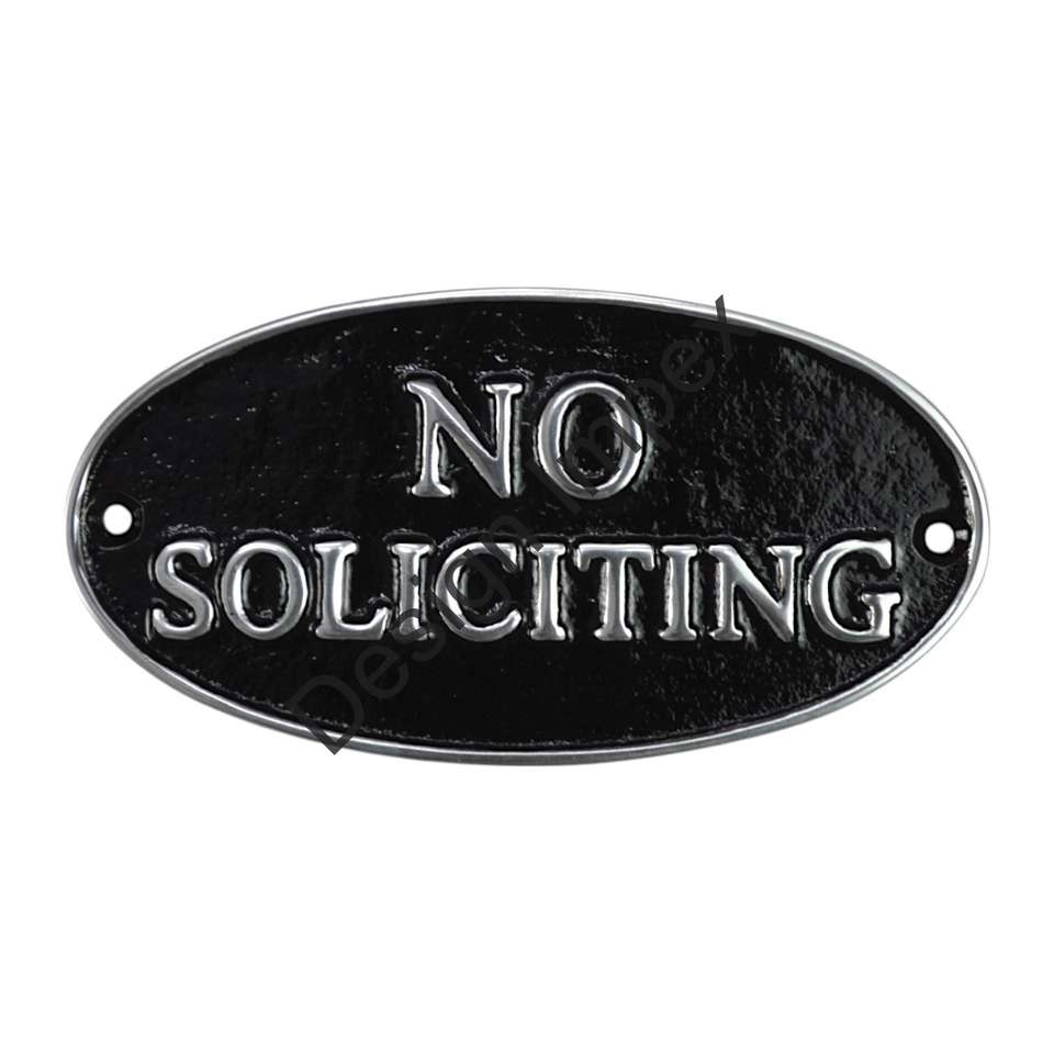 Oval Shape Black Painted No Soliciting Plaque General Wall Sign Metal Crafts Decorative Signs For Decoration Items