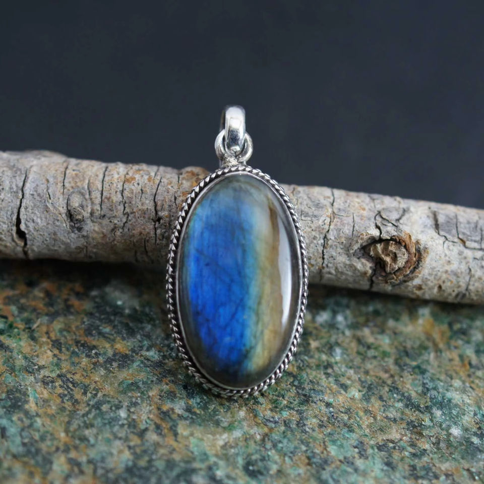 Oval Shape Blue Flash Labradorite 925 Silver Pendant Designer Boho Indian Silver Jewelry with Flash Charm