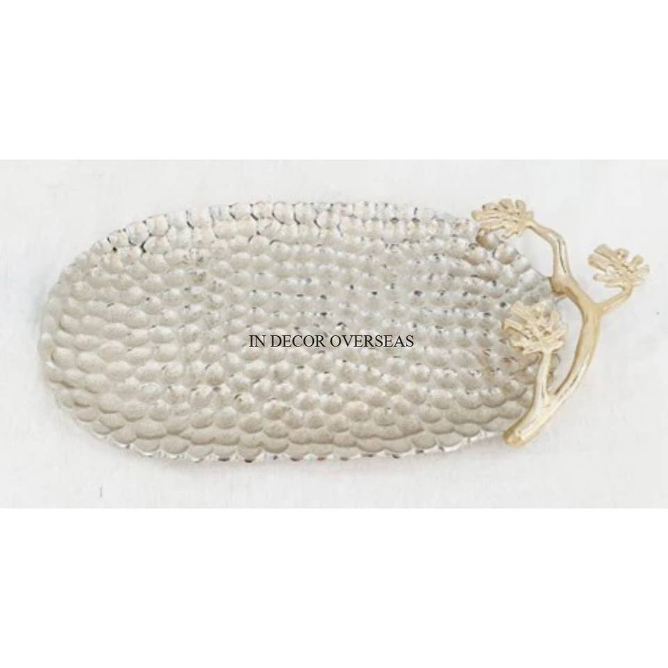 Oval Shape Factory Direct Supply Premium Quality Metal Unique Hammered Texture Silver Shiny Polished Serving And Decorative Bowl