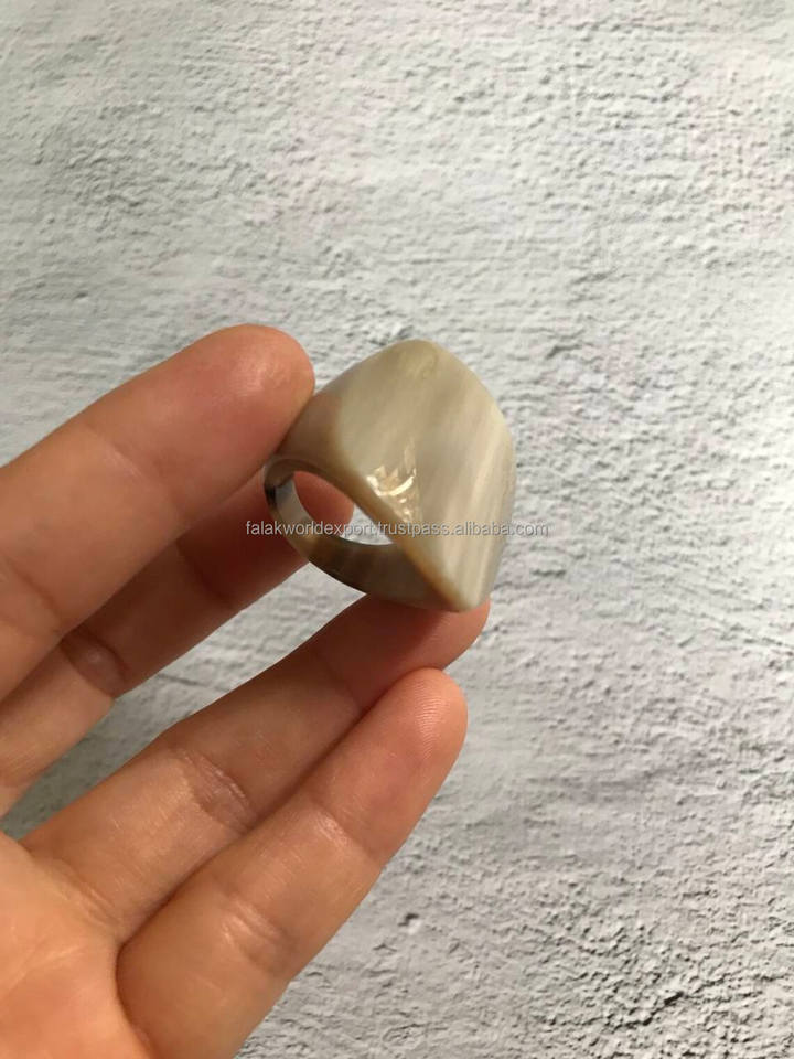 Oval Shape Horn Rings Feature Captivating Black and Brown Stripes Buffalo Horn Ring for Women and Men Accessories by FWE
