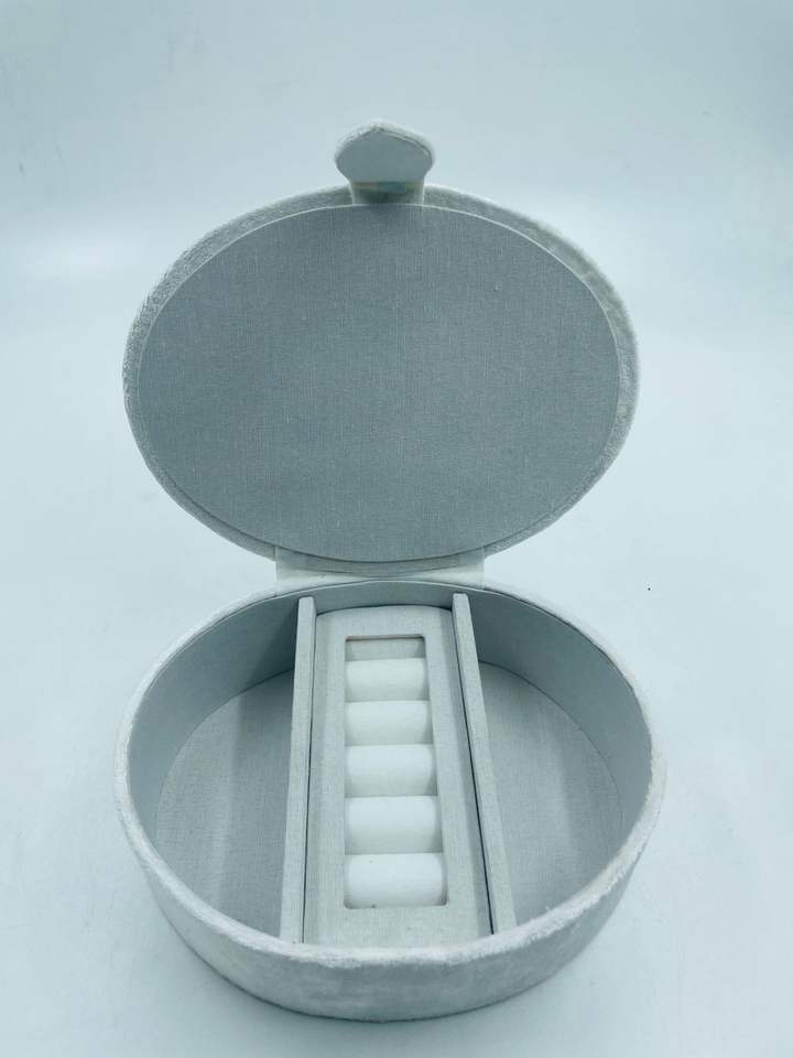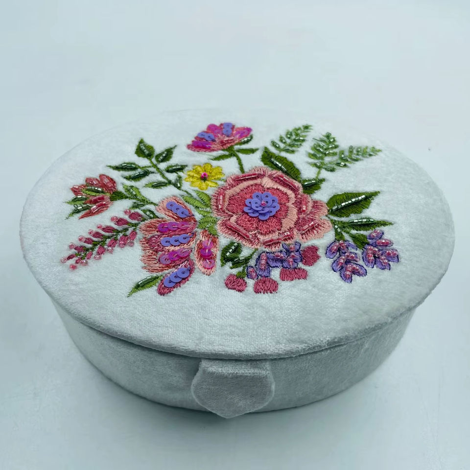 Oval Shape Luxury Velvet Wood Fabric Jewelry Organizer Hand Beaded Embroidery Customized Color Size Storage Box Customized Logo