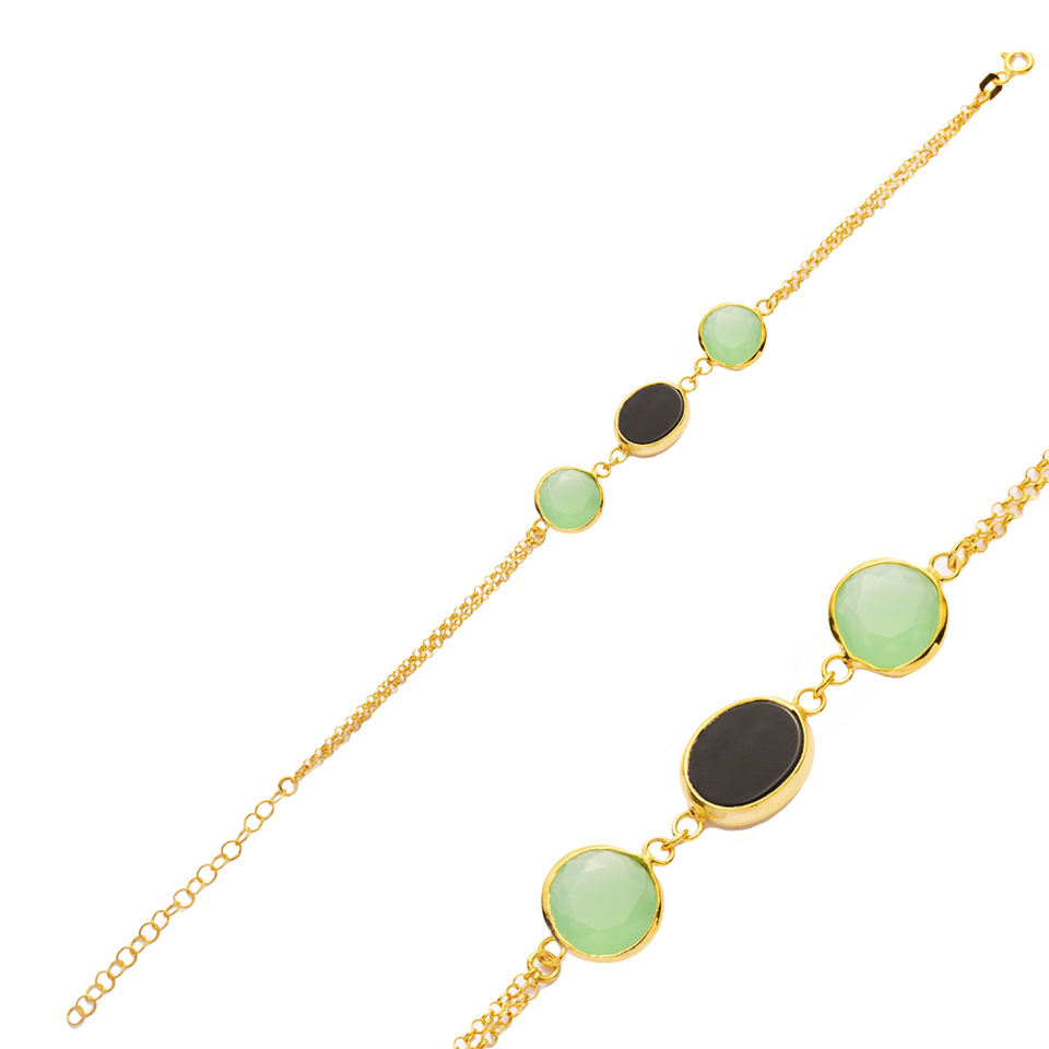 Oval Shape Quartz Stones Gold Bezel Charm Silver Bracelet Wholesale Handmade 925 Sterling Jewelry