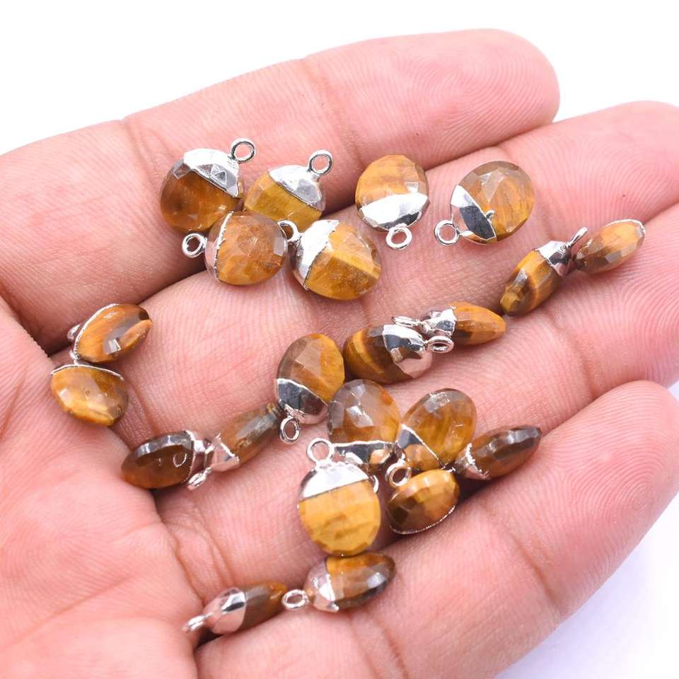Oval Shape Tiger Eye 12-14mm Pendant 14K & 18K Gold & Silver Plated Made From Brass with Bail zodiac signs of Leo, Aries, Gemini