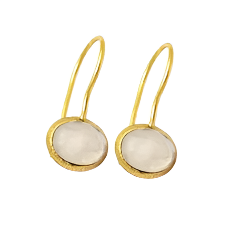 Oval Shape rose quartz gemstone 925 sterling silver gold plated ear wire dangle earrings Fashionable Earring For Wedding Gift.