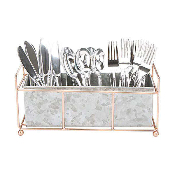 Oval Shaped Galvanized 6 Section Metal Iron Oval Shaped Kitchen Cutlery Holder Galvanized Flatware Kitchenware Usage Holder