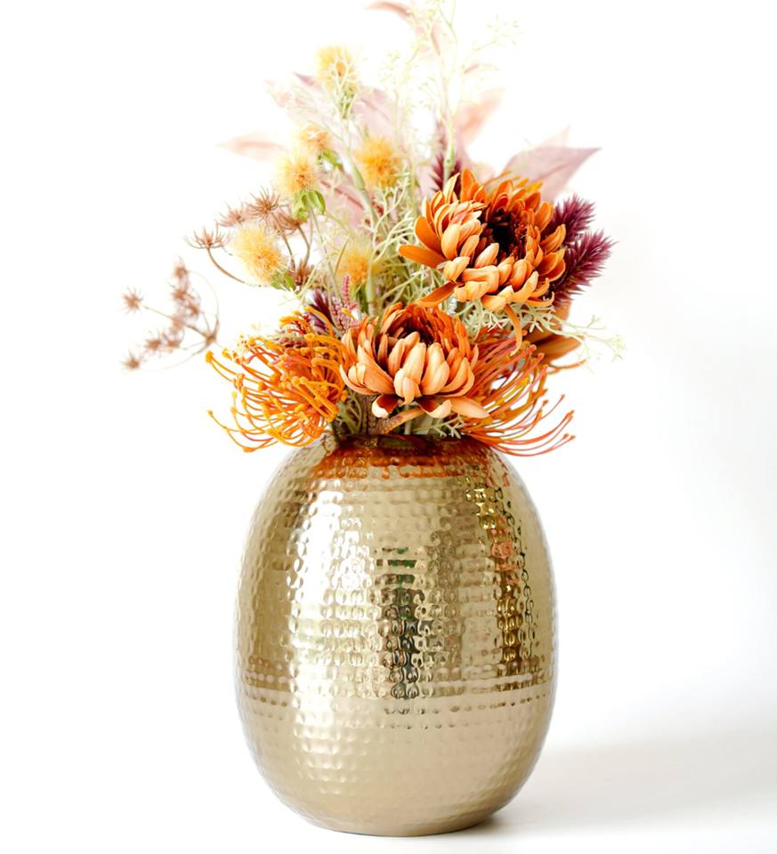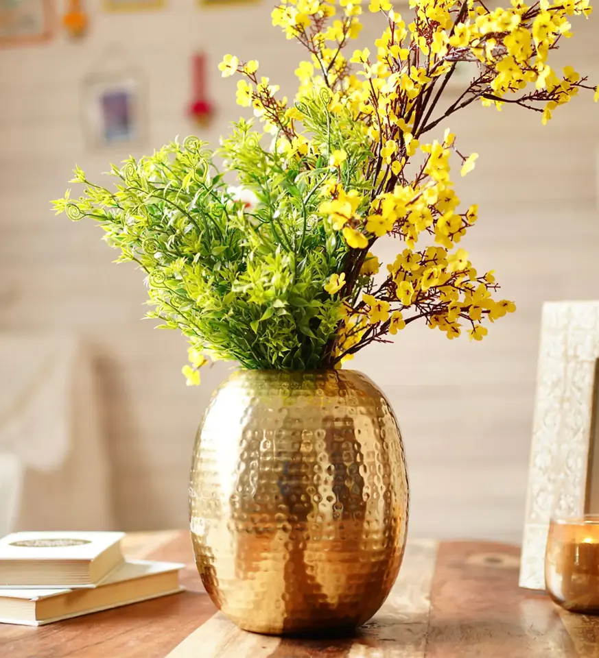 Oval Shaped Hammered Golden Metal Flower Vases, Vertical Decoration Flower Vases for Table, Study Room, Living Room and Bedroom