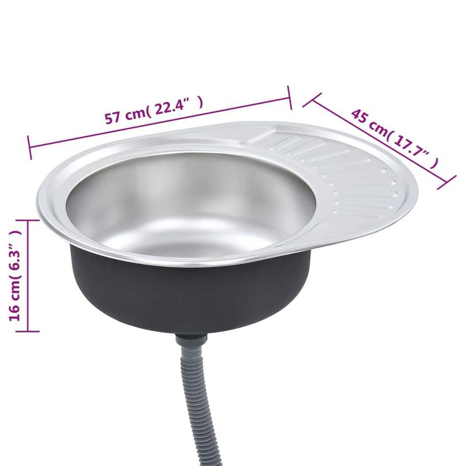 Oval Stainless Steel Kitchen Sink with Strainer and Trap