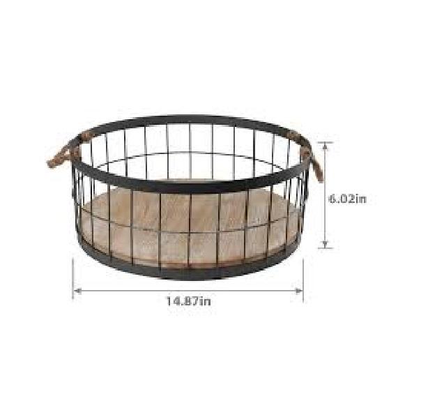 Oval Strong Iron Wire Basket Matte Black With Small Wooden Base Fruit and Vegetables Basket Supplier