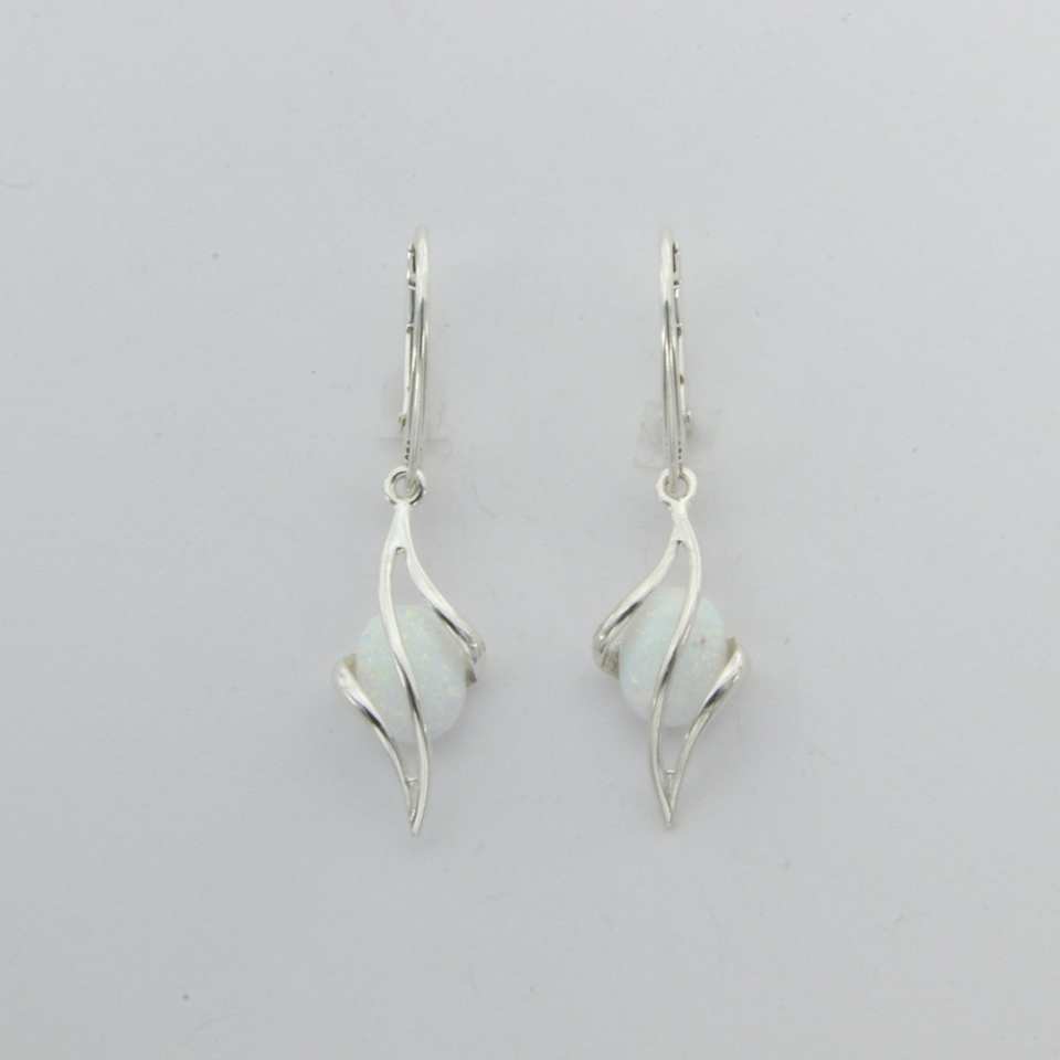 Oval White Fire Opal Swirl Dangle Earrings In 925 Sterling Silver Leverback Closure Elegant October Birthstone Gems Earrings