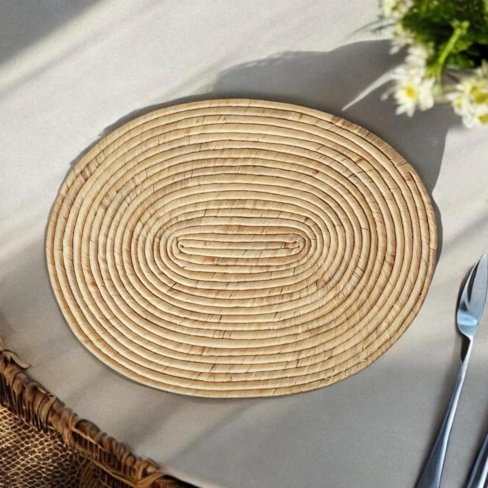 Oval rolled water hyacinth placemat:Size: L17,8 x W13,8 inch