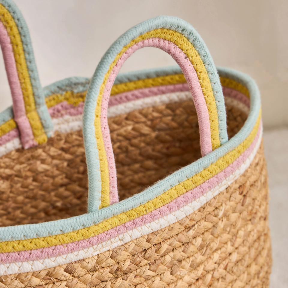 Oval-shaped water hyacinth basket with cotton handle Handmade Storage Basket Wholesale eco-friendly Made in Vietnam
