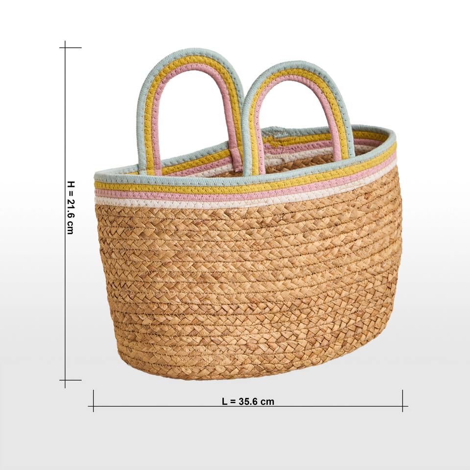 Oval-shaped water hyacinth basket with cotton handle