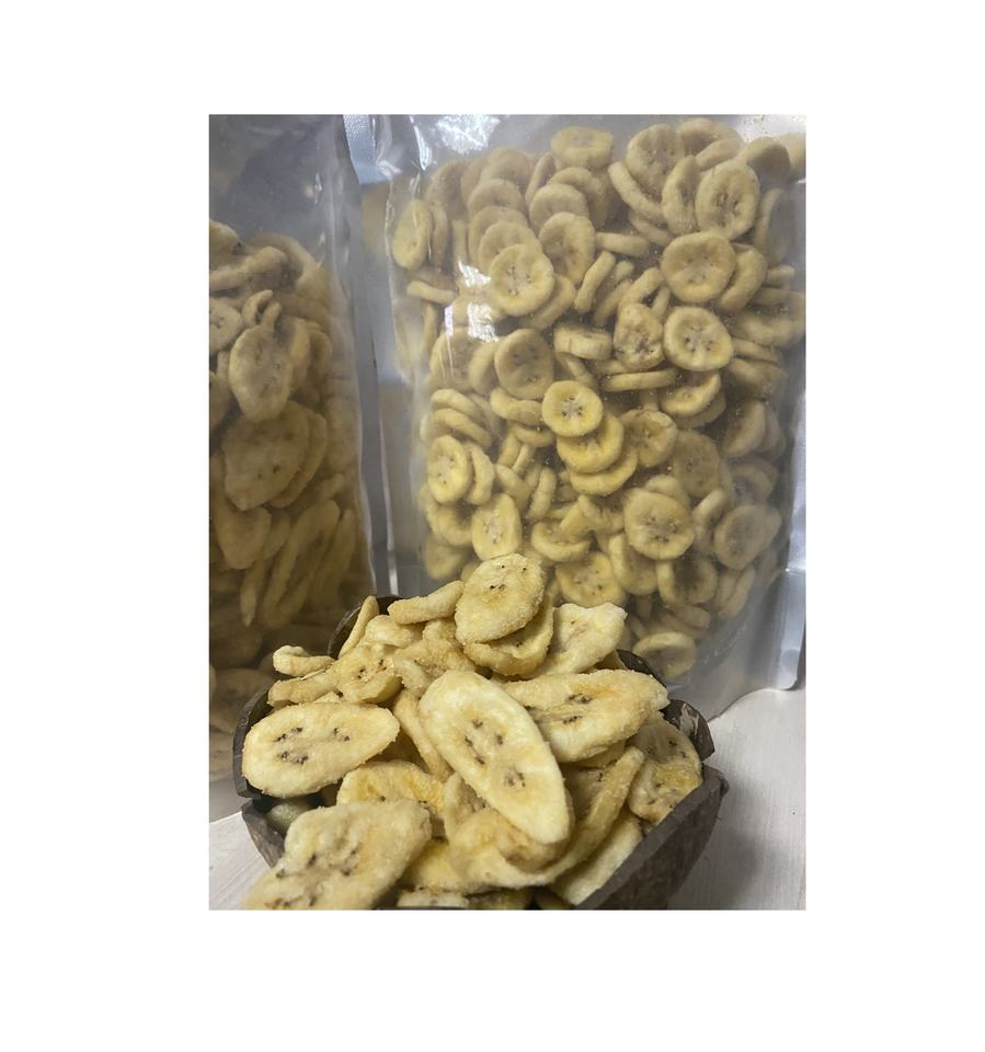 Oval sliced dehydrated banana chips tropical material excellent for snack and retail packaging worldwide supplier from Vietnam