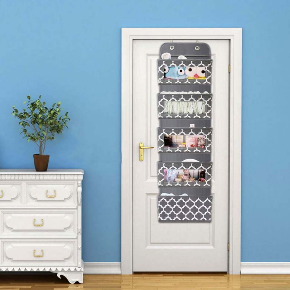 Over Door Wall Mount Storage Hanging Organizer with Clear PVC Window Pocket for Bedding Tools Cosmetics Stationery Sundries
