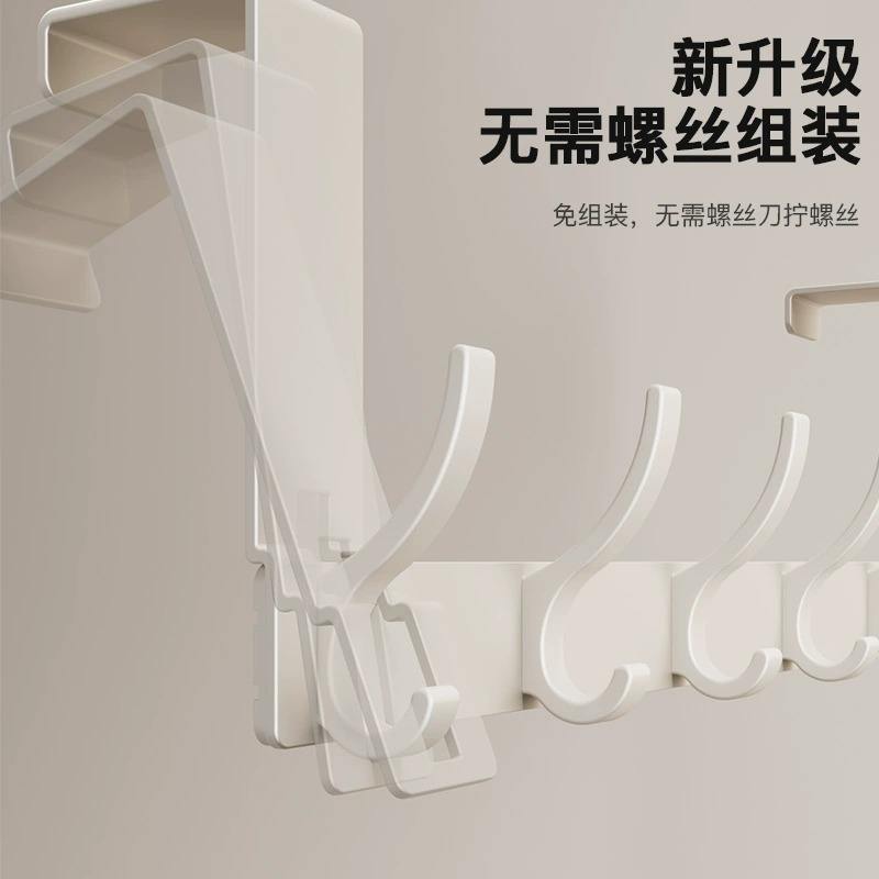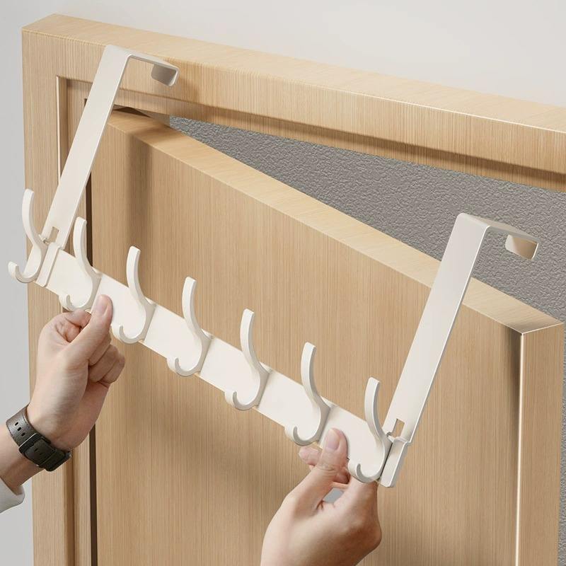 Over Door Hook Rack Cream Color 7 Hooks PP Plastic No Drill Installation Bedroom Storage Clothes Hat Organizer