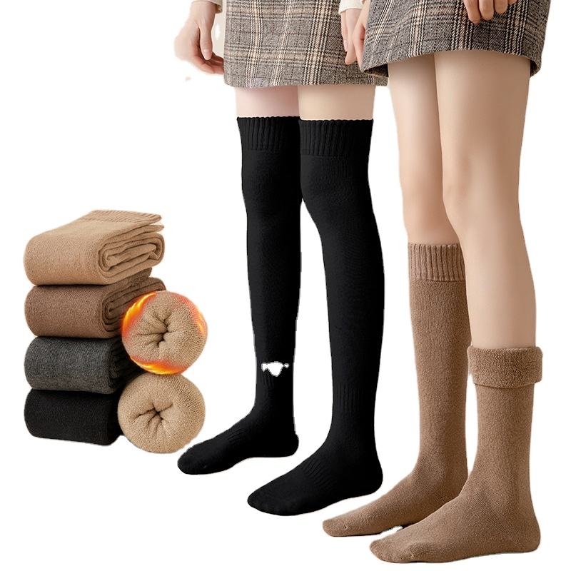 Over Knee Socks Custom Design for Women Terry Long-tube Polyester Breathable Knitted Autumn Winter Warm Socks