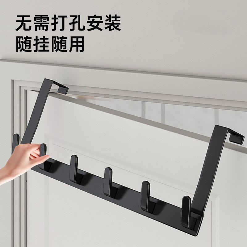 Over The Door Hook Rack Heavy Duty Wall Mounted Minimalist Design For Bedroom Dorm Storage With 5 Hooks Black