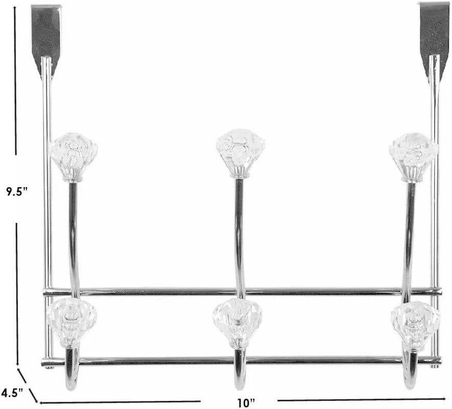 Over-the-Door Stainless Steel Rack with 6 White Crystal Hooks Double Tier Chrome Hanger for Clothes & Towels