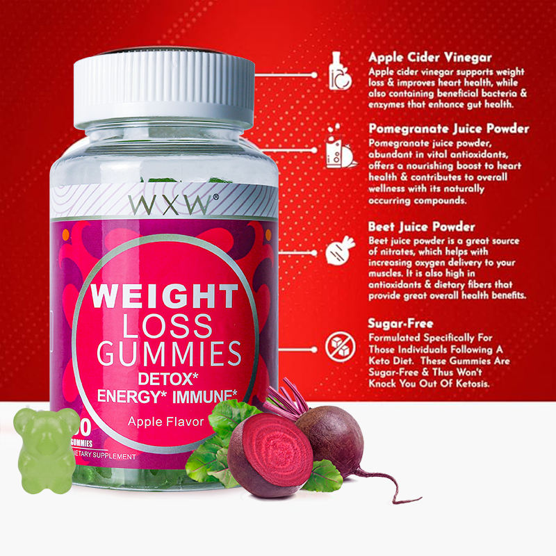 Overall Wellness Apple Flavor Weight Loss Gummies Pomegranate Juice Powder with Apple Cider Vinegar Gummies Skin & Hair Support