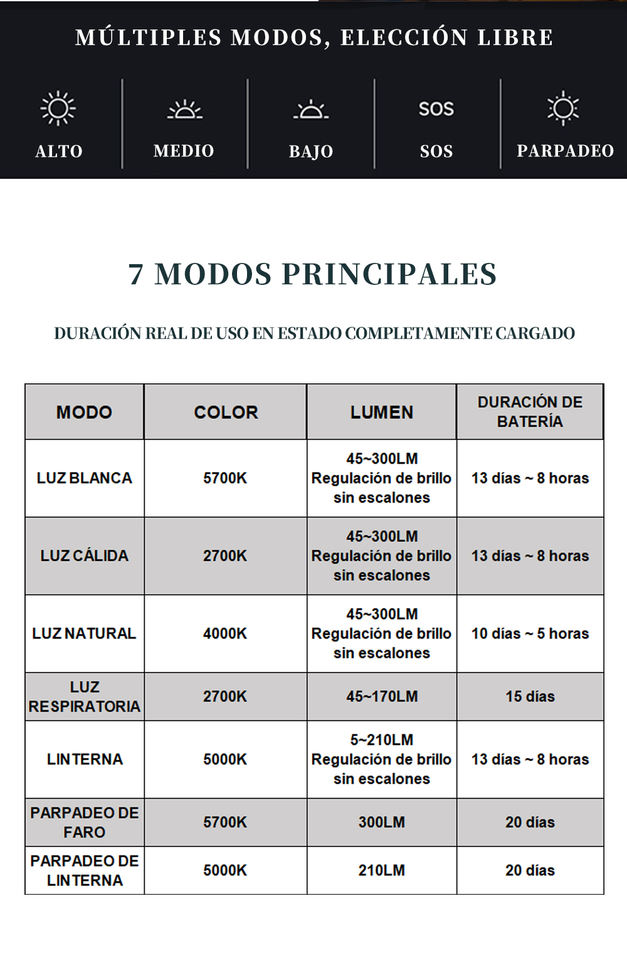 2700K (Soft Warm White), 4100K (Neutral White), 5000K (Daylight)