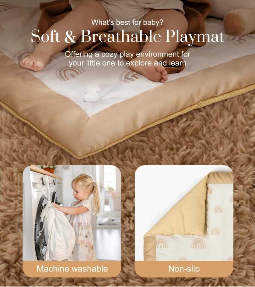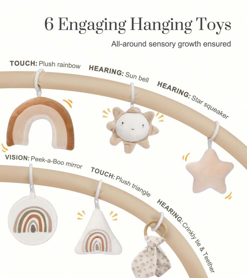 Oversize Baby Play Mat with 6 Detachable Toys Tummy Time Play Gym & Activity Mat Promote Motor Skills & Sensory Development