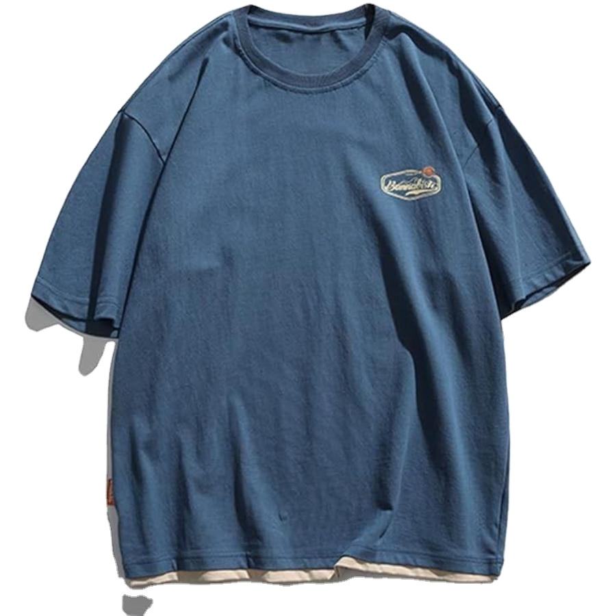 Oversize Blue Mens Womens Formal Knitted T-Shirts Sweat Absorbent Finest Quality Polyester/Cotton Custom Logo Regular Fit Export
