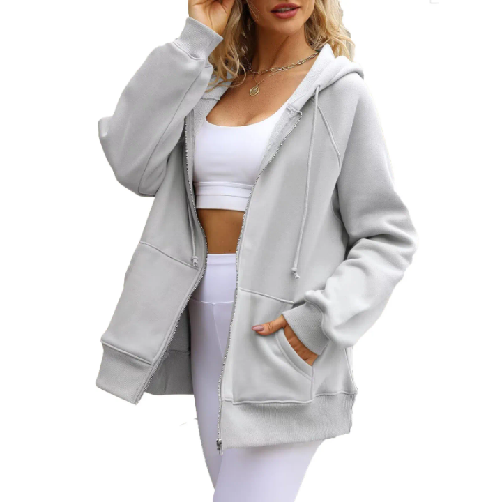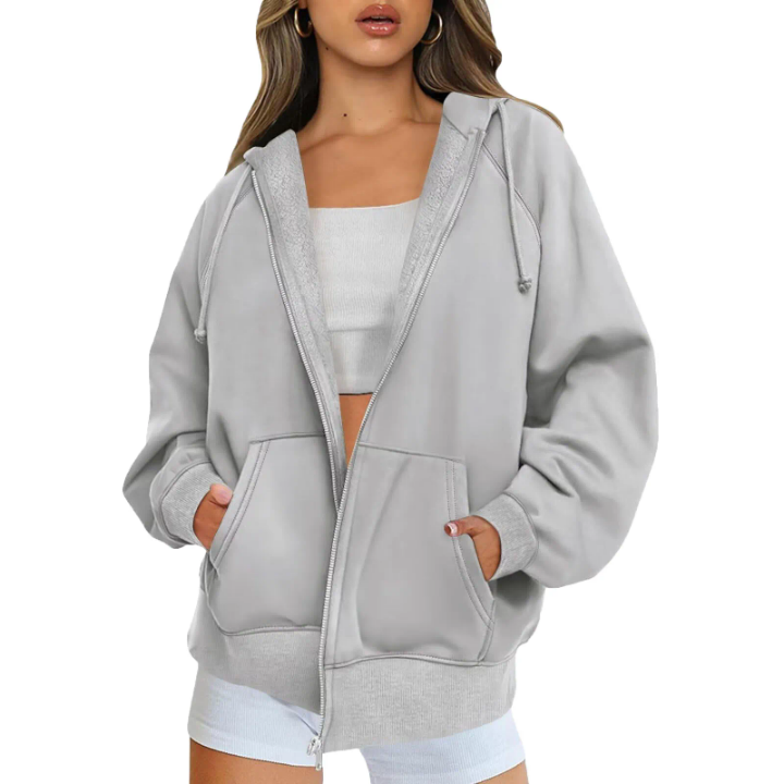 Oversize Custom Fashionable Acid Wash Winter Long Sleeve Women's Sweatshirt Full-Zip Hoodie Dress