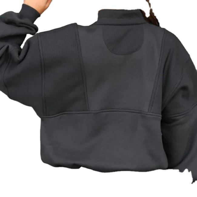 Oversize Heavy Cotton Half Zip Womens Hoodie Embossed Logo Sport Workout Sweatshirts Pocket Streetwear Breathable Customizable