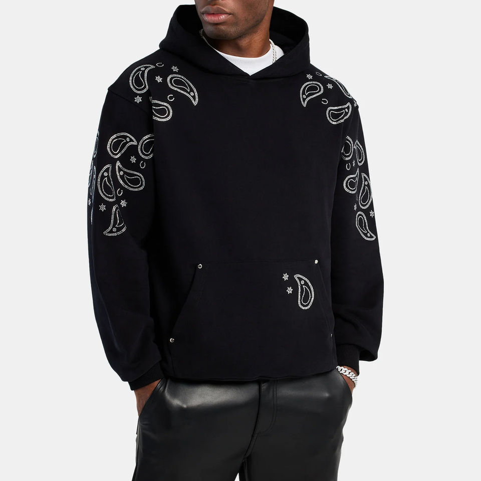 Oversize Hoodie 500GSM Thermal Heavyweight Pullover with Rhinestone French Terry Fabric Rhine Stone cotton blended