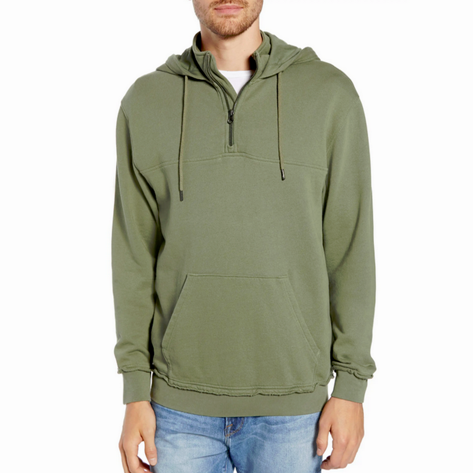 Oversize Men's Hoodies Green Color Oversize Hooded Half Zipper Sports Pullover Sweatshirts for Adults