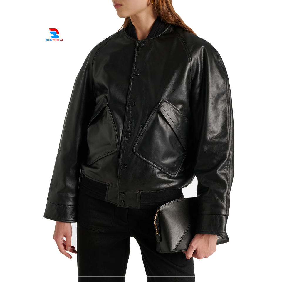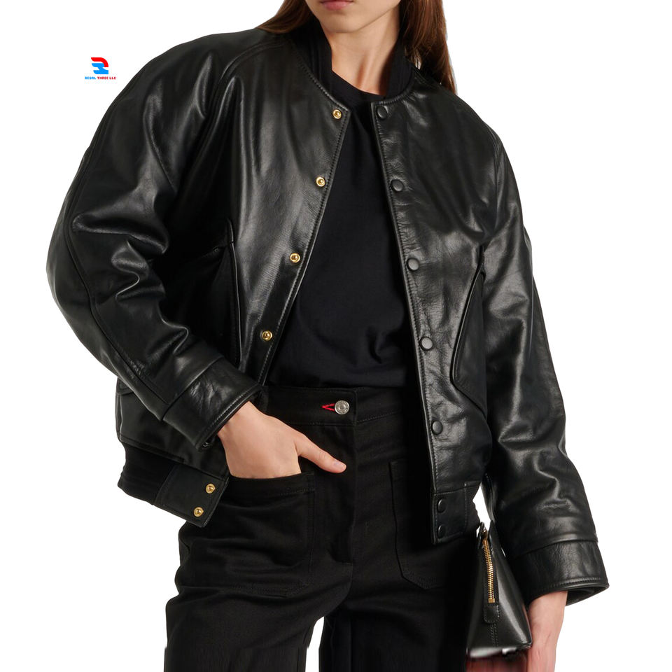 Oversize Quilted Cotton Lining Women's Genuine Leather Varsity Motorcycle Jacket-High Quality Winter/Autumn