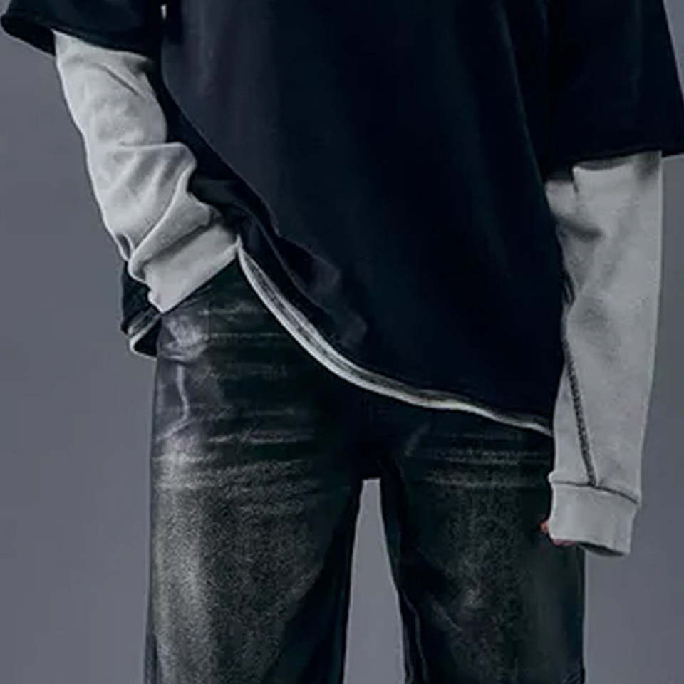 Oversize T Shirt Custom Print T Shirt Knit Top Thermal Double Layer Double Layer Sleeve T Shirt for Men
