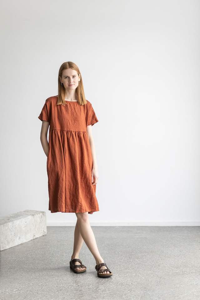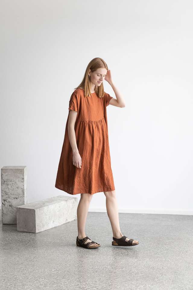 Oversize Women's Pure Linen Summer Dress High Waist Short-Sleeved Washed Smoke Colored Plus Size Soft and Natural