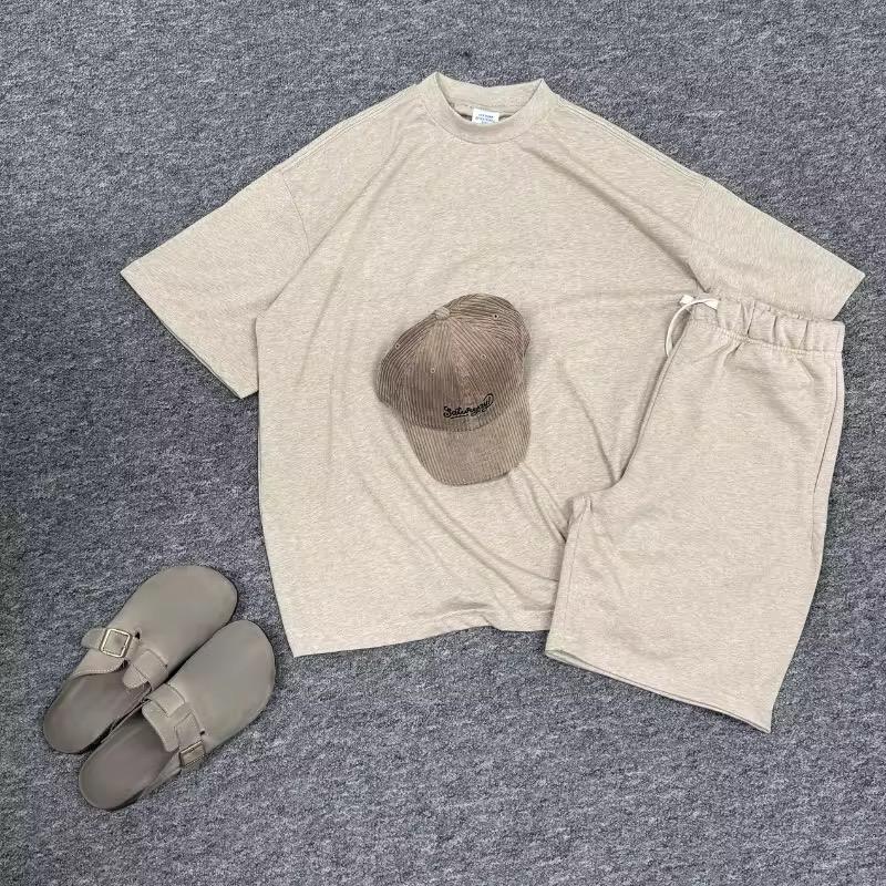 Oversized 100% Cotton T-Shirt & Shorts Set Men's Casual Summer Print Clothing with Custom LOGO Design Heavyweight