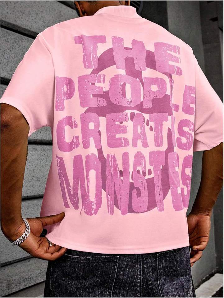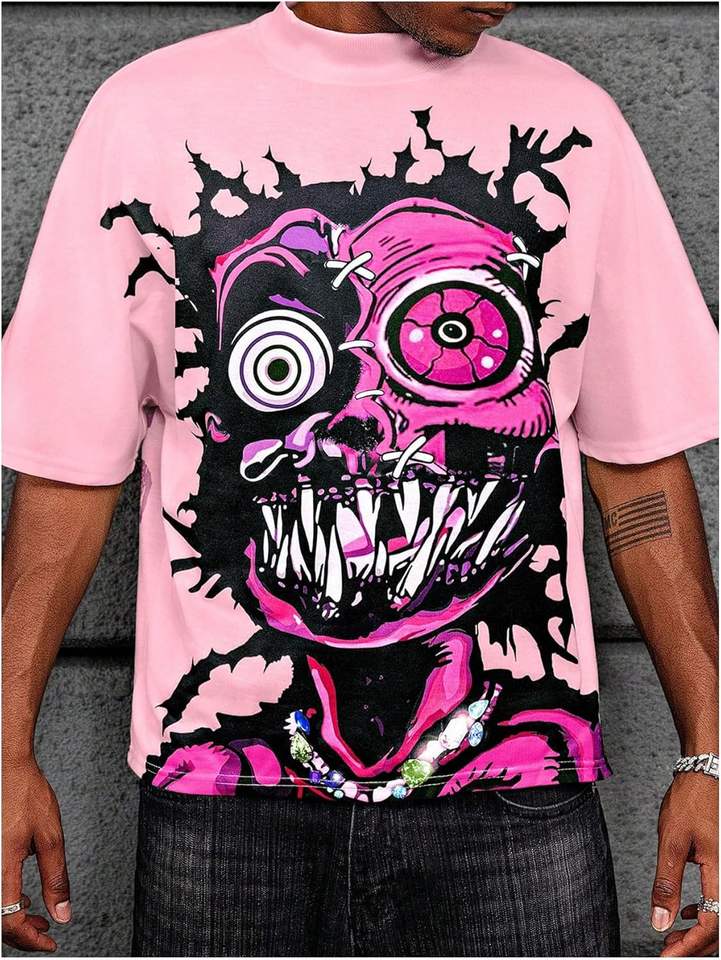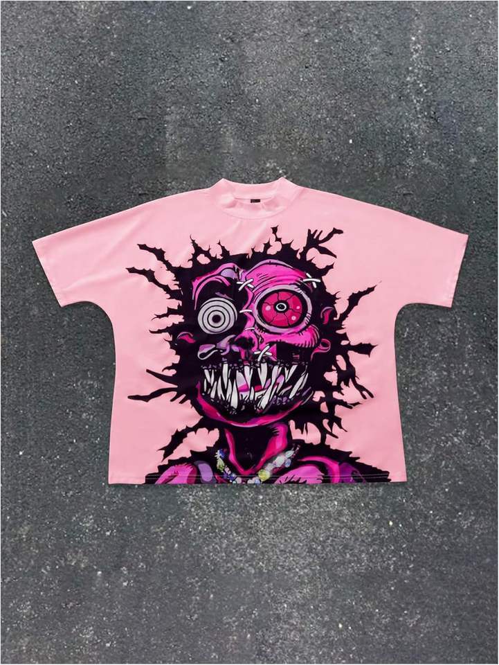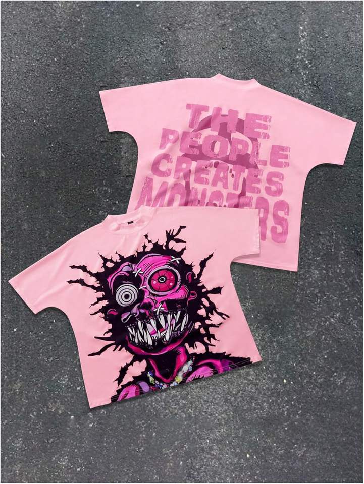Oversized Anime Horror T-Shirt Streetwear Monster Face Tee Trending Pink & Orange Graphic Custom Design & Printing