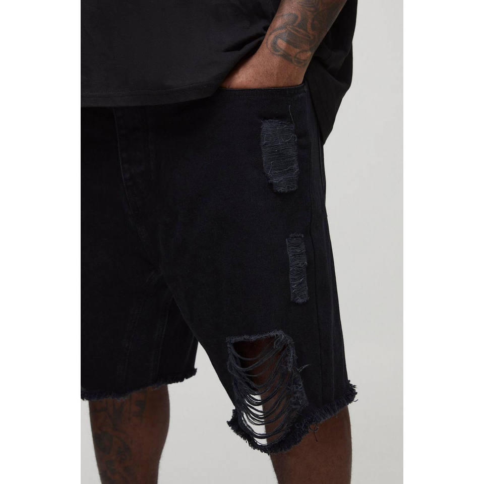 Oversized Black Ripped Denim Shorts for Men Custom Raw Hem Grunge Streetwear Jorts Loose Fit Hip Hop Fashion OEM Summer Supplier