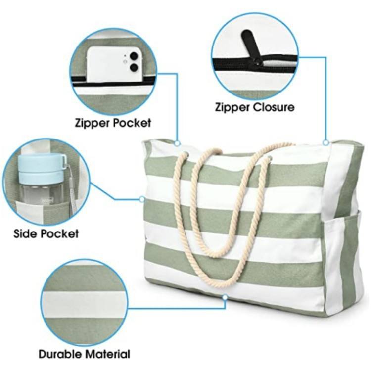 Oversized Collapsible Water Resistant Sand Proof Beach Tote Bag For Travel Storage