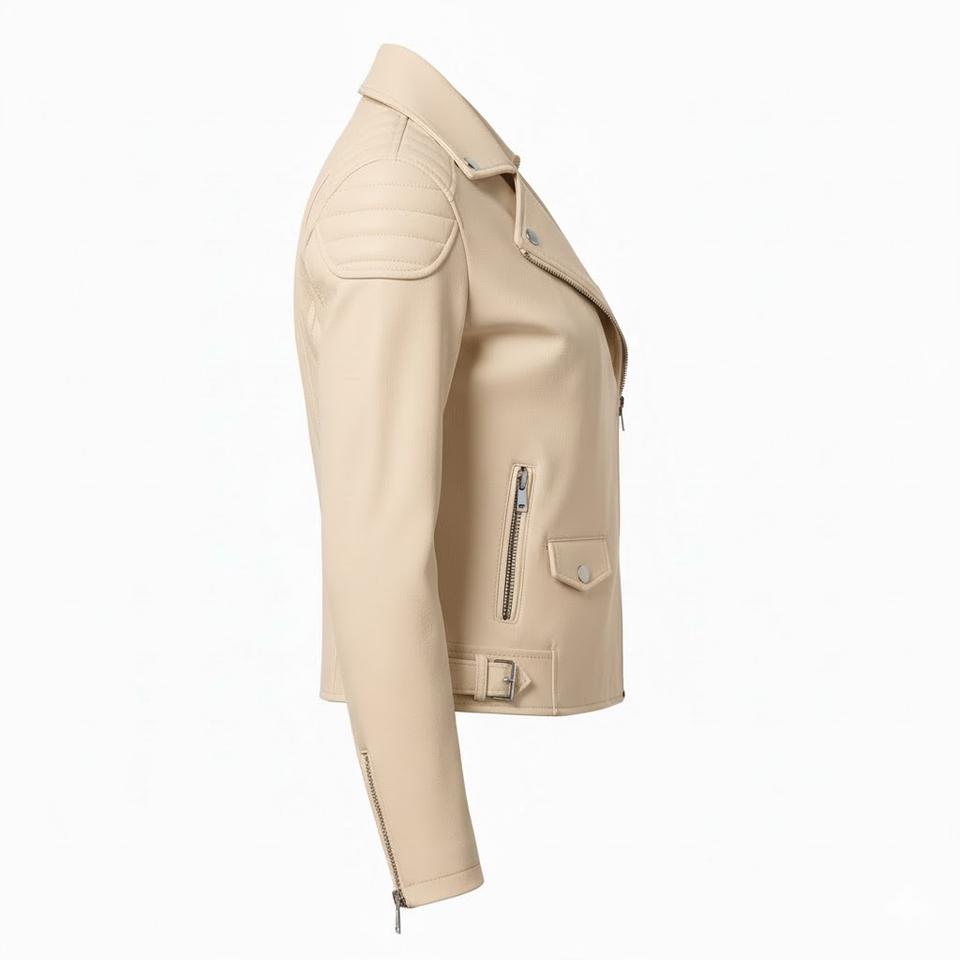 Oversized Cream Leather Motorbike Jacket Women Custom Bulk Wholesale Factory Price Genuine Biker Style Ladies Fashion Gear