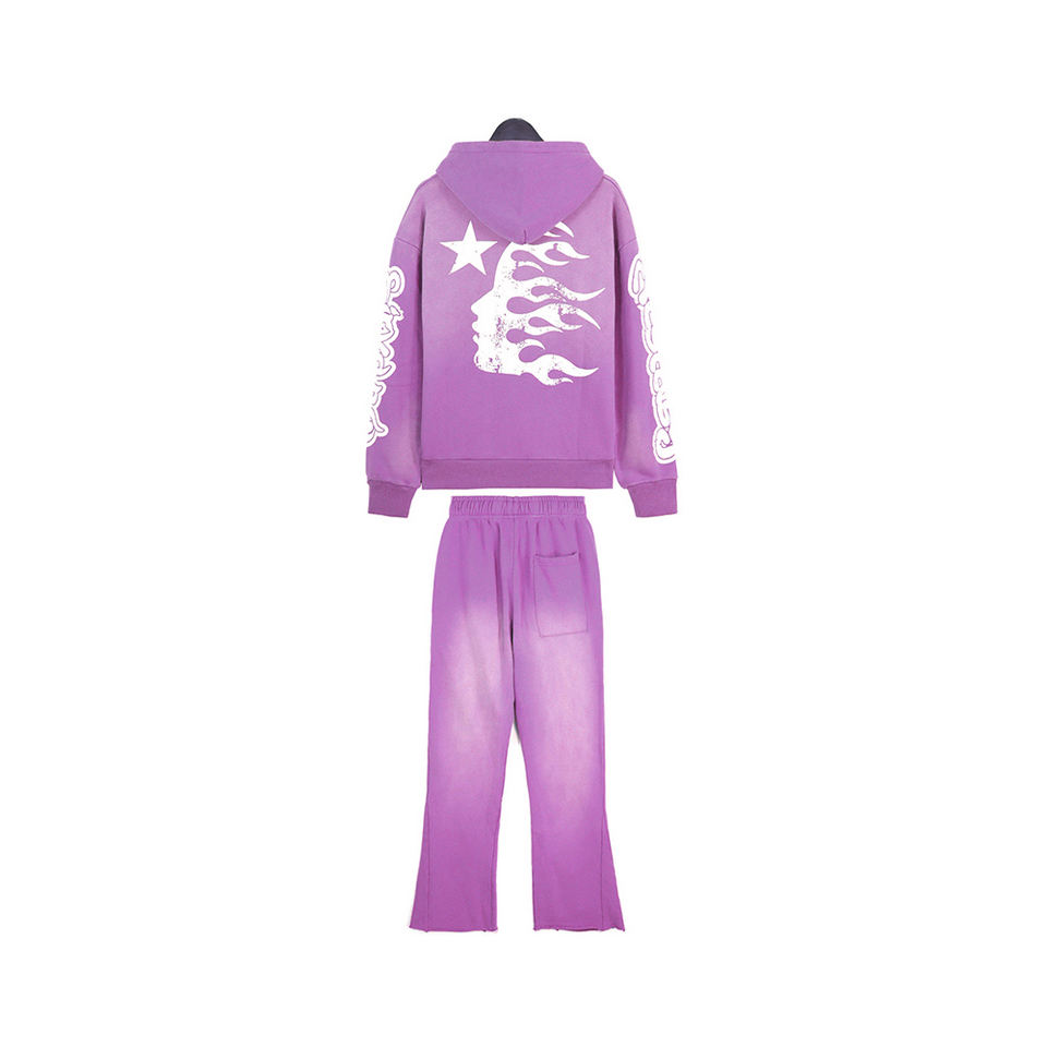 Oversized Custom Track Suit Heavyweight 2024 Acid Washed Hoodie and Jogger Sets Cotton Fleece Hoodie Track Suit for Men