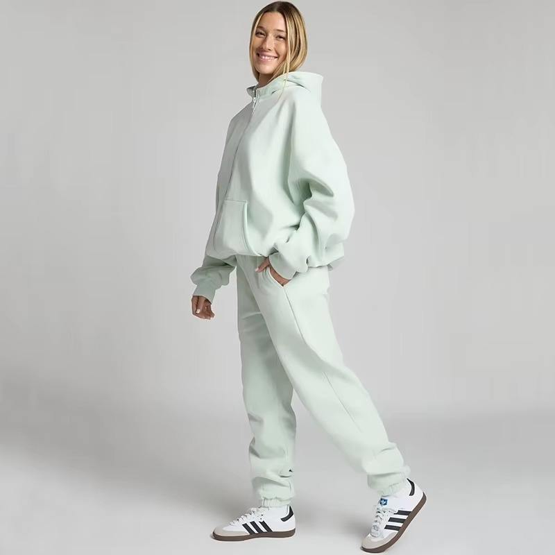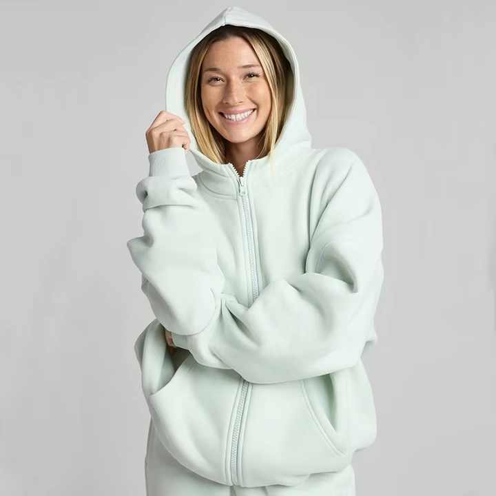 Oversized Custom Zipper Hoodie Jogger for Women Breathable Cotton Polyester Fleece Lounge Wear Embroidered Lined Super Soft