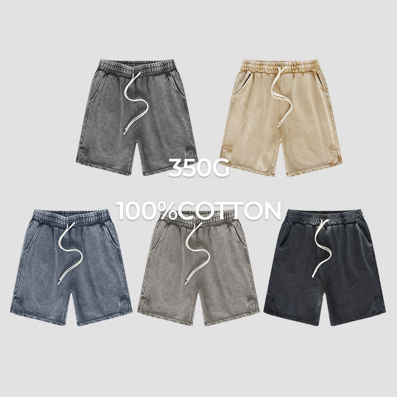 Oversized Fit Men's 350GSM Shorts Heavyweight 100% Cotton Breathable Fabric Acid Wash with Drawstring Shorts for Summer