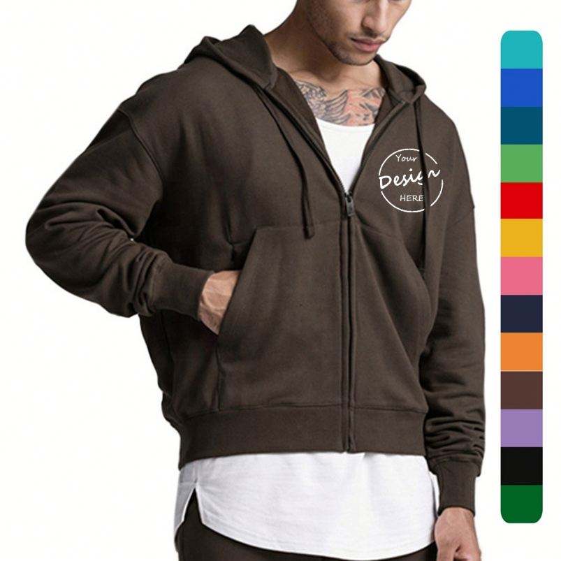 Oversized Full Zipper Hoodie Hooded Sweatshirt Custom Logo Casual Streetwear Asymmetric Heavyweight White Hoodies for Men
