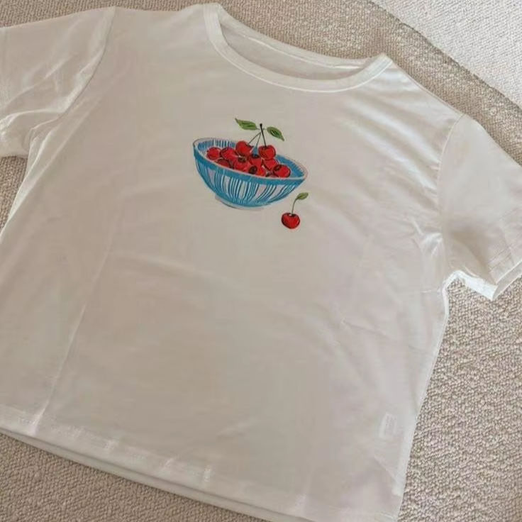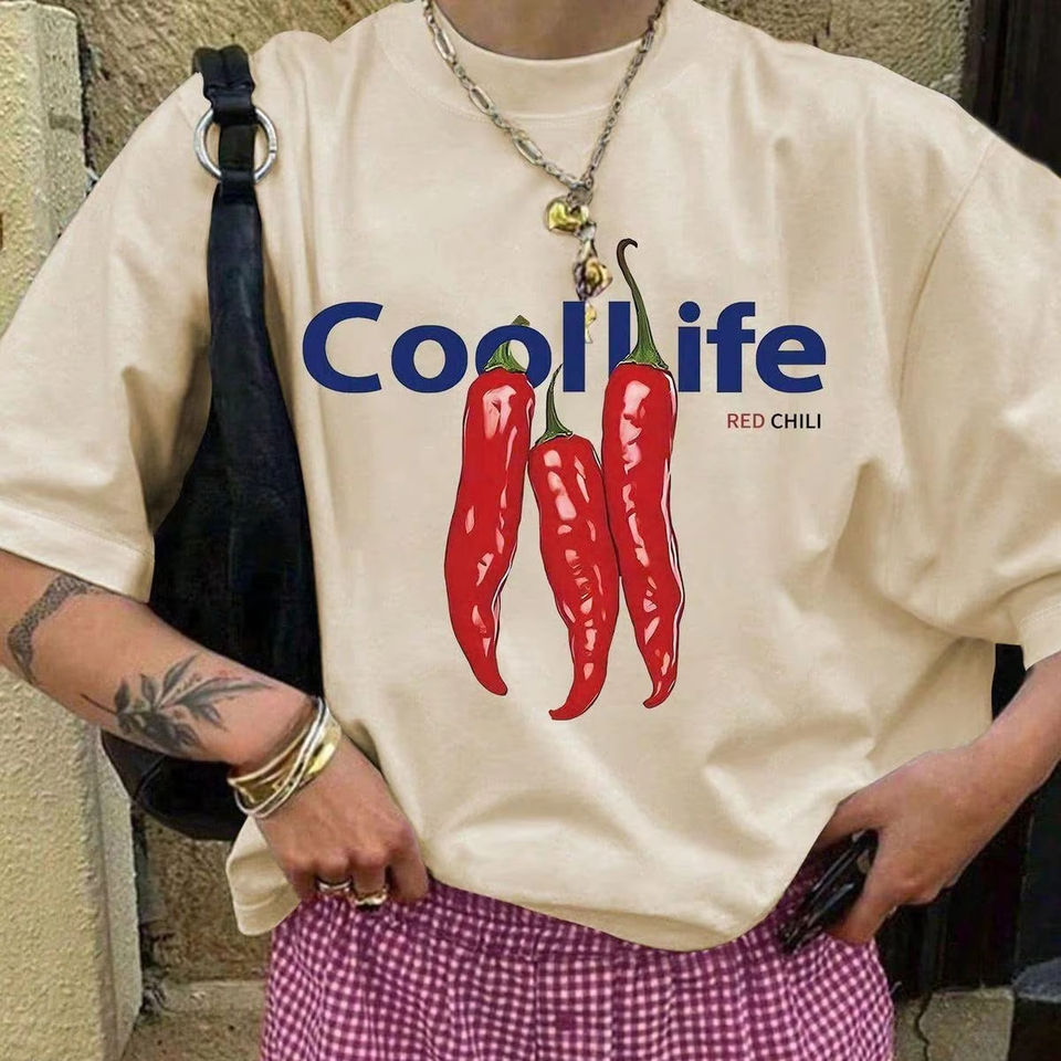 Oversized Graphic T-Shirt Aesthetic Food Flower Print Trendy Summer Tee Loose Fit Soft Cotton Top Statement Style Gift