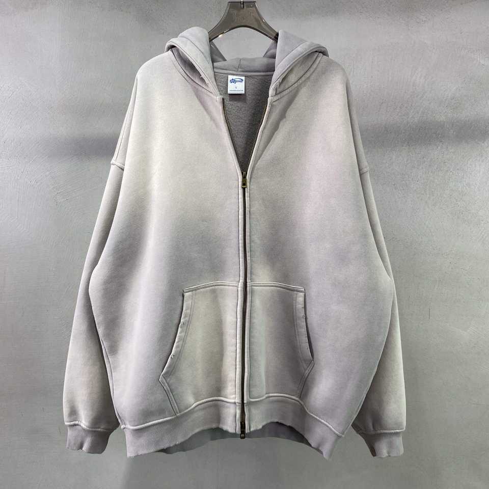 Oversized Heavyweight Vintage Acid Wash Zip Up Fleece Pullover Pocket Hoodies for Men