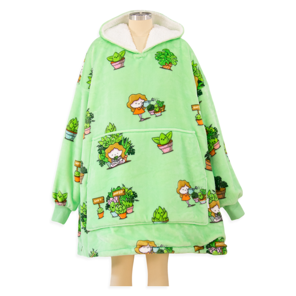 Oversized Hoodie Blanket with All-Over Print Flannel Sherpa Wearable Blanket for Winter Cambodia Garment Manufacturing Factory