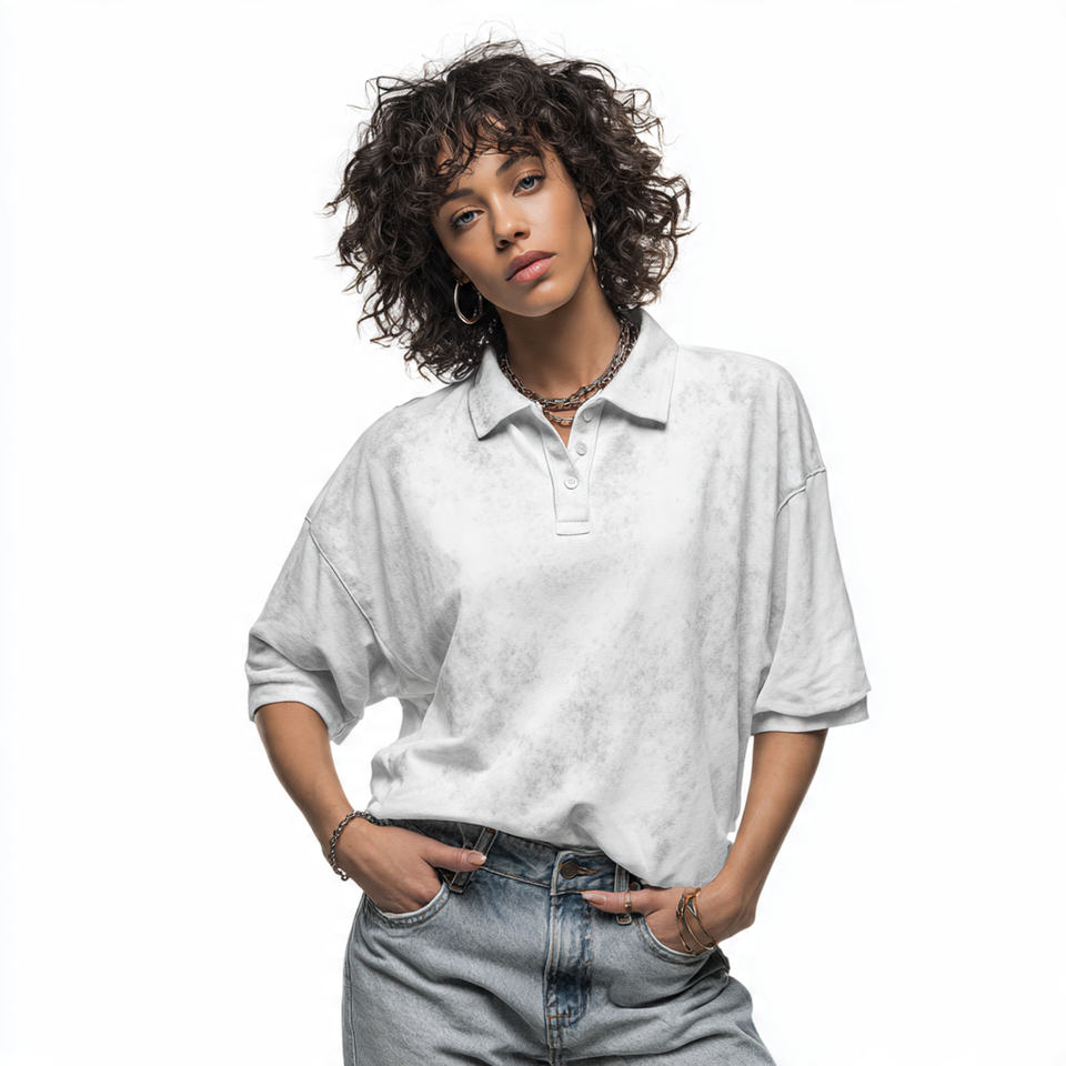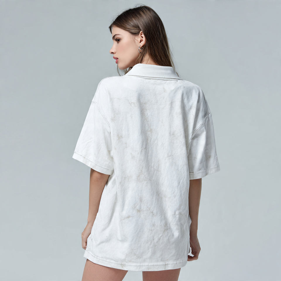 Oversized Knitted for Shirt Women Turn Down Collar Drop Shoulder Acid Wash Breathable Eco-Friendly Loose Fit