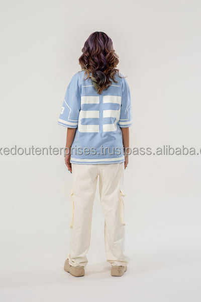 Oversized Light Blue American Football Jersey T-Shirt Women Streetwear 33 Print Crewneck Short Sleeve Cotton Vintage Top