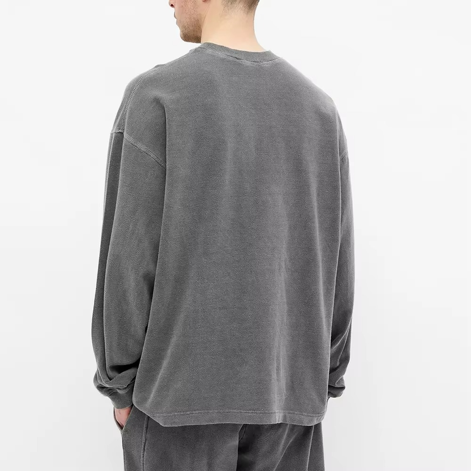 Oversized Long Sleeve Crew Neck Sweatshirt Vintage Washed Distressed Men's Winter Plain Dyed 240gsm Contrast Stitch Faded Black