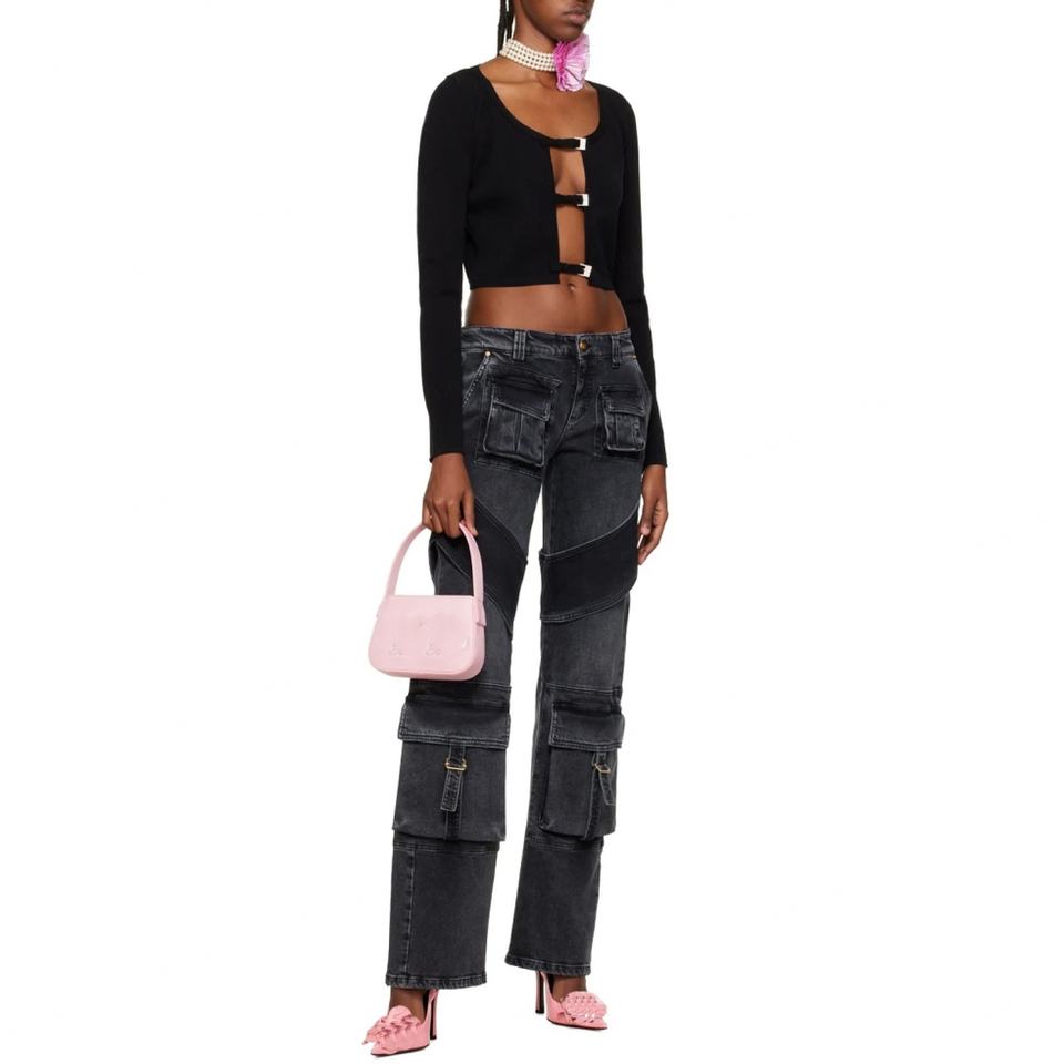 Oversized Loops Back Cargo Pockets Fading Throughout Stretch Denim Jeans for Women's