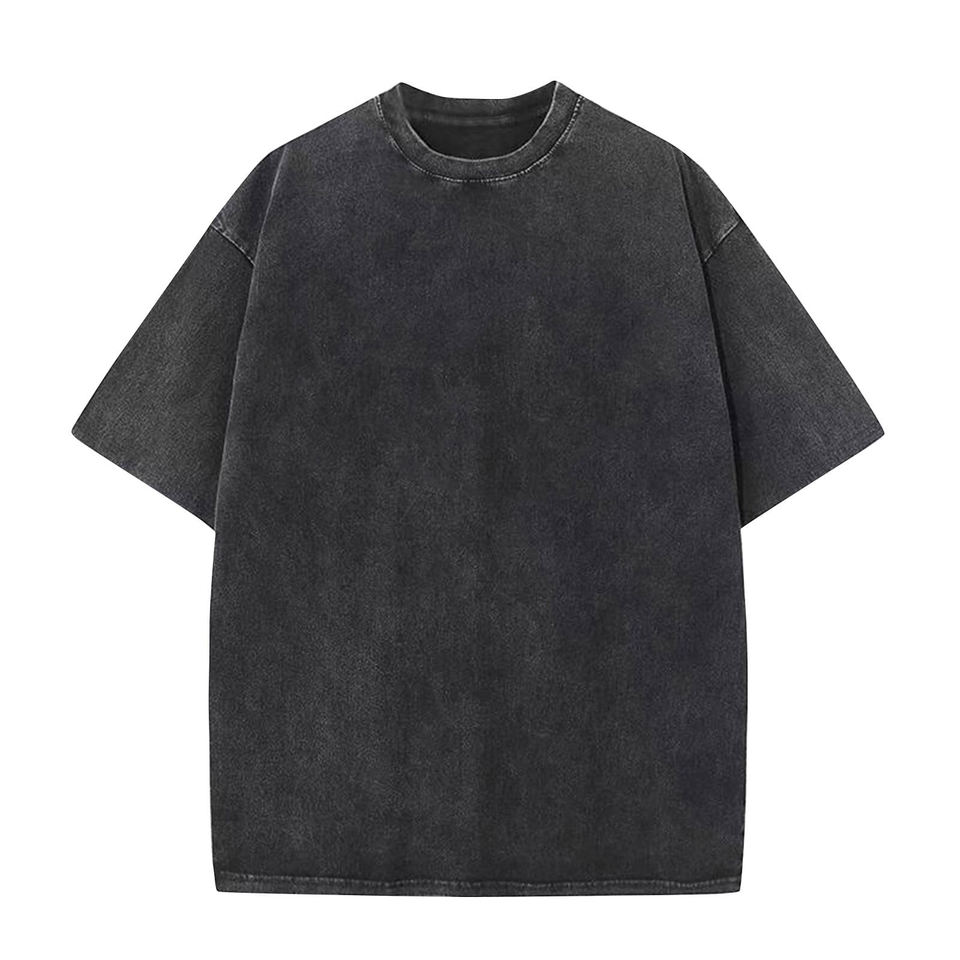 Oversized Loose Fit Man Clothes 100% Cotton Printed Ringer Rib O-neck T-shirt for men Vintage Washed Men's T-Shirts Blank
